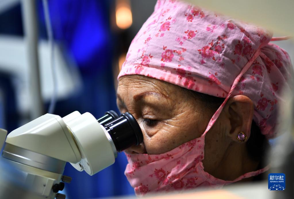 藏族眼科專家卓嘎給患者實施復(fù)明手術(shù)(3月24日攝)。新華社記者覺果 攝