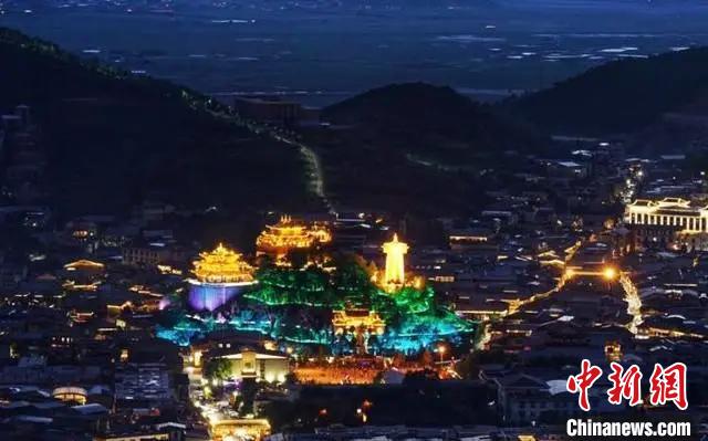圖為夜里的迪慶香格里拉獨(dú)克宗古城璀璨奪目?!『蜁匝?攝