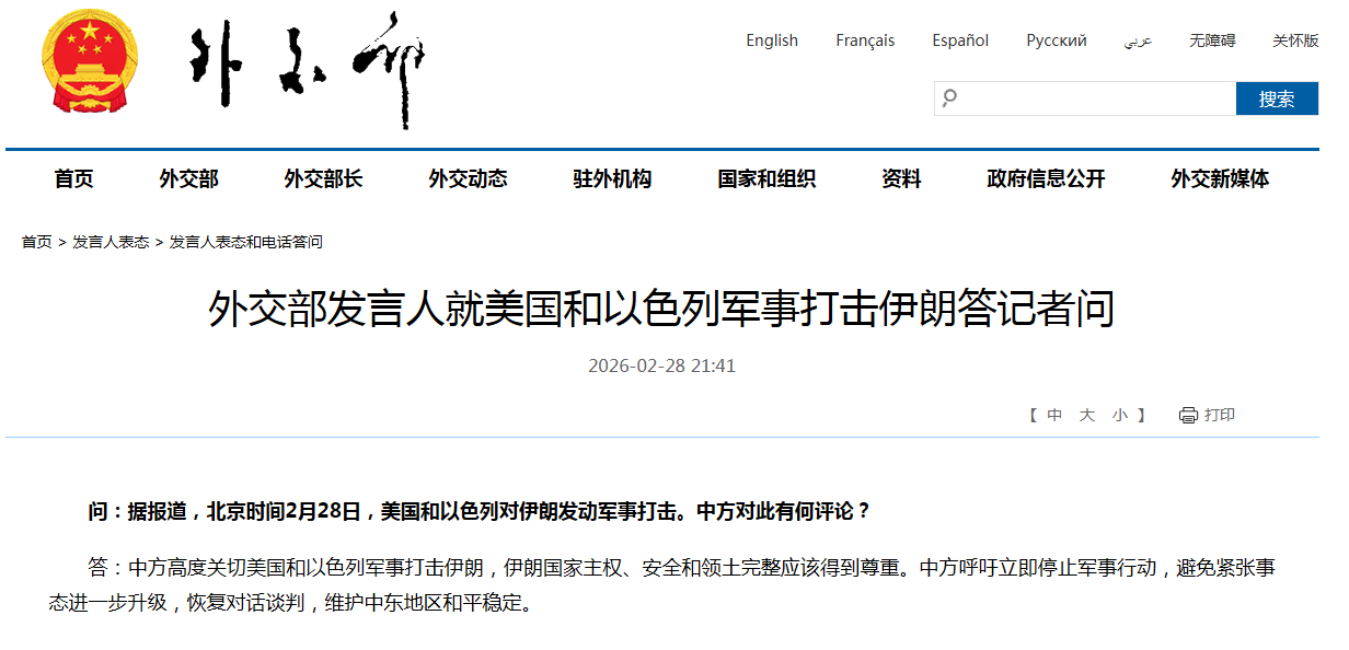 應(yīng)中國和俄羅斯的要求,聯(lián)合國安理會緊急召開會議。中國外交部第一時間表明嚴(yán)正立場:伊朗國家主權(quán)、安全和領(lǐng)土完整應(yīng)該得到尊重。