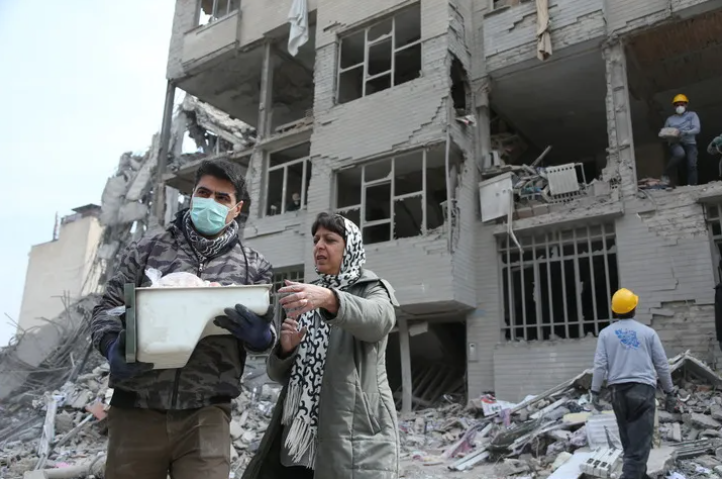 美國(guó)和以色列空襲之后,伊朗首都德黑蘭的市民在廢墟中翻找出一些自家物品 圖片來(lái)源:新華社