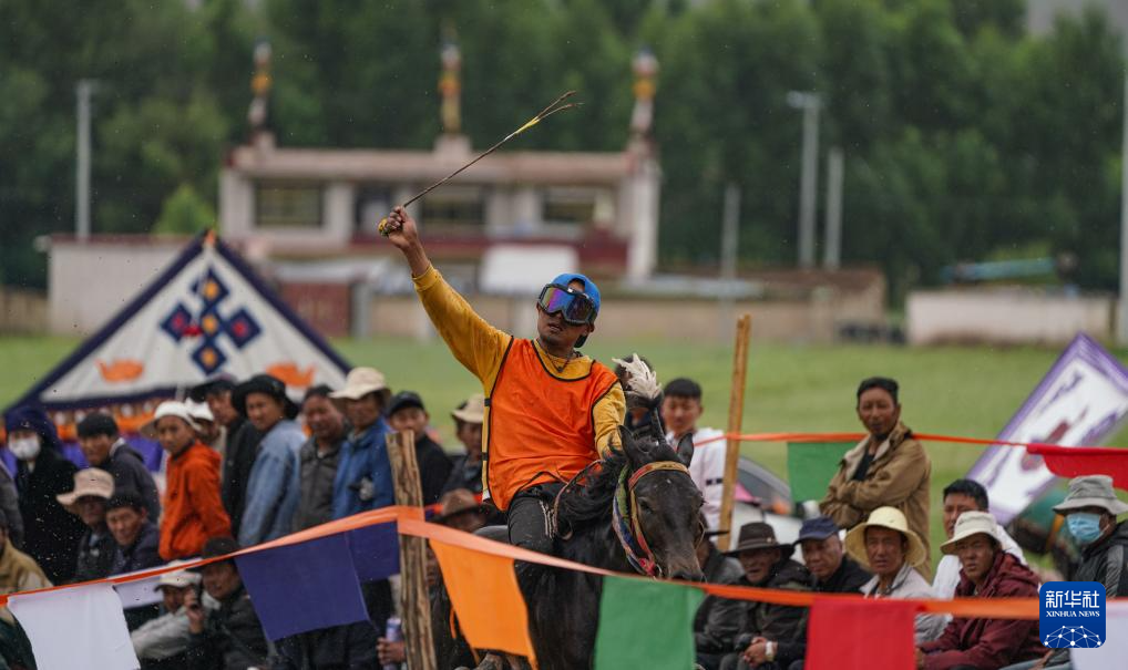 7月23日,選手在拉薩甘丹曲果鎮(zhèn)賽馬場參加走馬比賽新華社記者 晉美多吉 攝