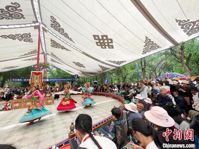 觀展佛、看藏戲是雪頓節(jié)傳統(tǒng)活動(dòng)。世界文化遺產(chǎn)羅布林卡正上演著藏戲《頓月頓珠》,舞臺周圍擠滿了觀眾。人群中,32歲的卓嘎正熱心解答游客好奇的藏戲問題。她接受中新社記者采訪時(shí)表示:“今天是雪頓節(jié)第一天,專門來看藏戲,小時(shí)候都是跟著長輩來羅布林卡看,最喜歡八大傳統(tǒng)藏戲中的《白瑪文巴》。”