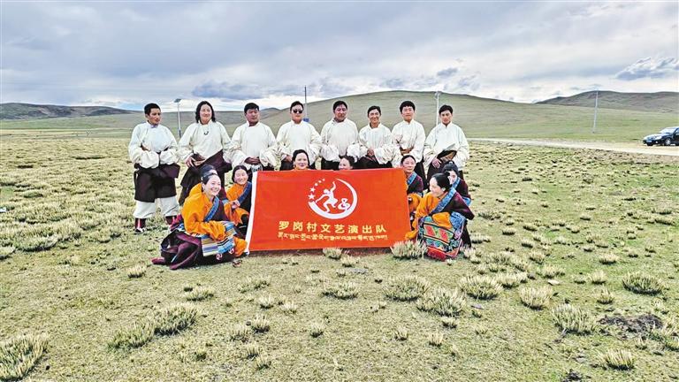 那曲市色尼區(qū)那曲鎮(zhèn)羅崗村文藝演出隊合影。通訊員 晉美頓旦 記者 王超 攝