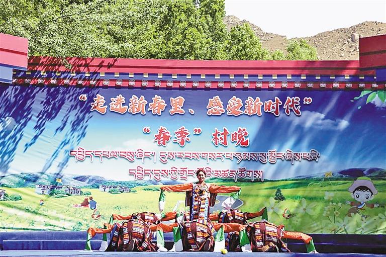 日喀則市定結縣藝術團與山南市洛扎縣藝術團在曲水縣南木村演出。通訊員 晉美頓旦 記者 王超 攝