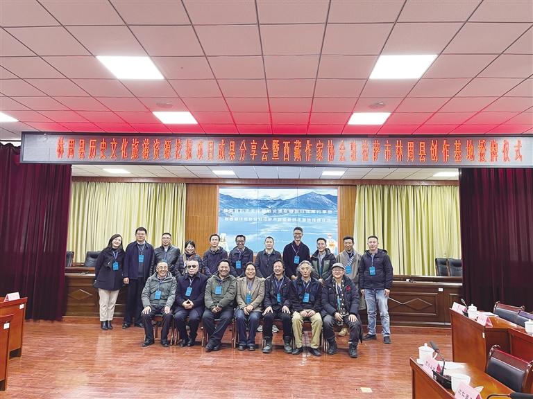 分享會后,西藏作家協(xié)會駐拉薩市林周縣創(chuàng)作基地揭牌?!敖裉炻犕陮<覍W者們的講述,對林周有了新的認識,今后也將邀請更多區(qū)內(nèi)外的作家到林周進行采風,以林周縣歷史文化、民風民俗為題材創(chuàng)作出更多優(yōu)秀作品,助力林周縣文旅產(chǎn)業(yè)發(fā)展。”西藏作協(xié)常務(wù)副主席次仁羅布說。