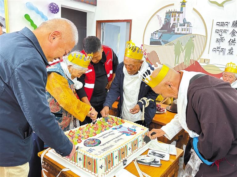 乃東街道開展“溫馨陪伴,愛滿重陽”活動,給社區(qū)老人過生日。