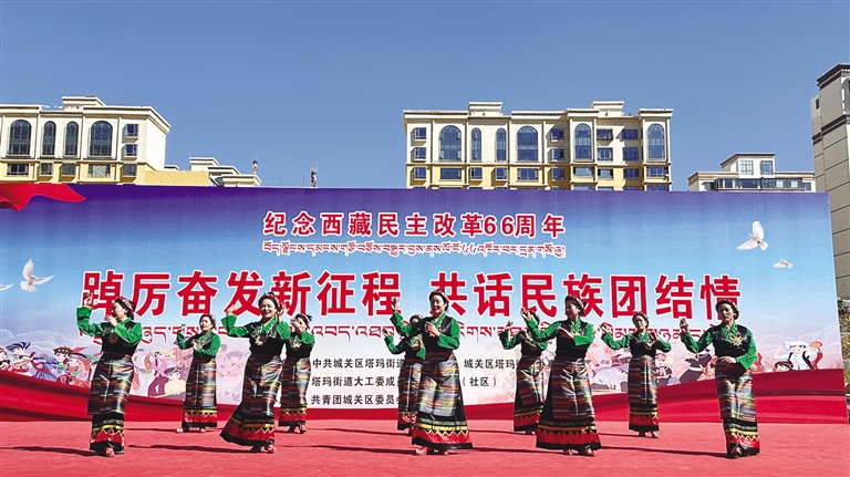 為隆重紀念西藏民主改革66周年,進一步豐富居民群眾的精神文化生活,助力提升基層治理,3月26日,由中共拉薩市城關區(qū)塔瑪街道工作委員會、拉薩市城關區(qū)塔瑪街道辦事處主辦的紀念西藏民主改革66周年系列活動在同心公園舉辦。據了解,此次活動以“踔厲奮發(fā)新時代 共話民族團結情”為主題,涵蓋文藝匯演和宣傳集市等,吸引了周邊眾多市民群眾參與。