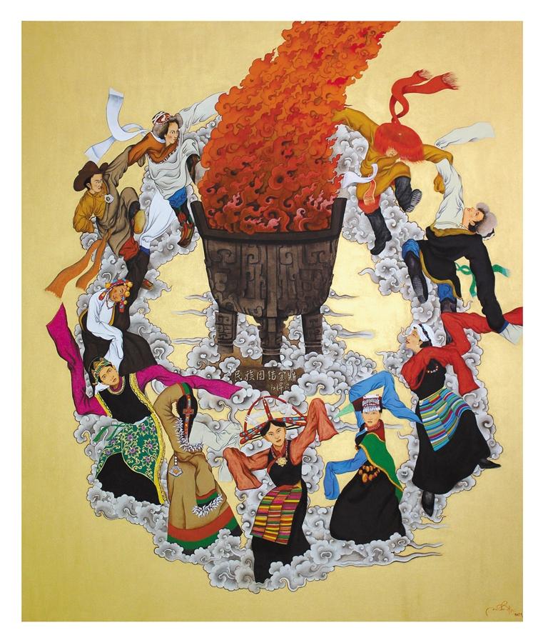 2012年到2019年,在西藏推進“西藏百幅新唐卡工程”中,這種扎根生活的創(chuàng)作理念得到充分展現(xiàn)。他與200多位畫師共同創(chuàng)作的《青藏公路通車》《西藏和平解放》等作品,將重大歷史事件與藏族民間敘事巧妙結(jié)合,既展現(xiàn)了時代變遷,又保留了民族藝術(shù)特色。這種“唯美唯新唯唐”的創(chuàng)作追求,為西藏主題性繪畫開辟了新路徑。