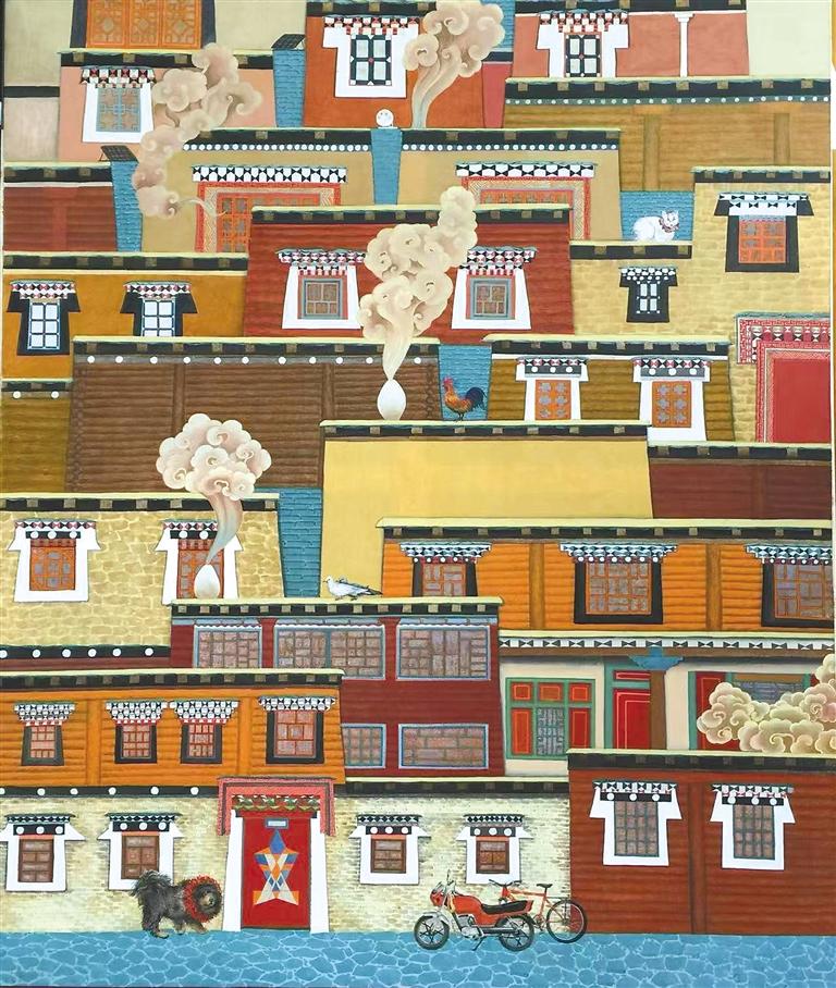作為一名畫家,拉巴次仁深知,創(chuàng)作源泉在于對生活的深刻理解和體驗。在他的作品中不僅展現(xiàn)了西藏的自然風(fēng)光和人文風(fēng)情,還傳遞出一種堅定而快樂的繪畫態(tài)度,讓人感受到藝術(shù)的魅力和生活的美好。他的創(chuàng)作實踐和藝術(shù)成就,為西藏繪畫藝術(shù)的發(fā)展貢獻了獨特的力量。