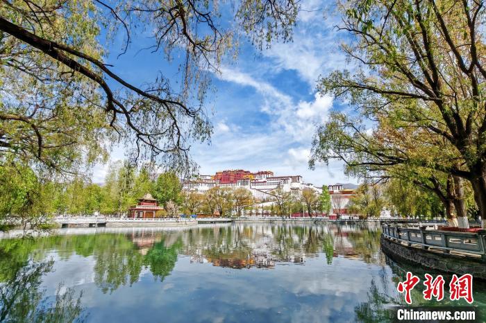 4月,高原古城拉薩一派春景,布達(dá)拉宮前后潭水凝碧、柳樹(shù)搖青,游客絡(luò)繹不絕。