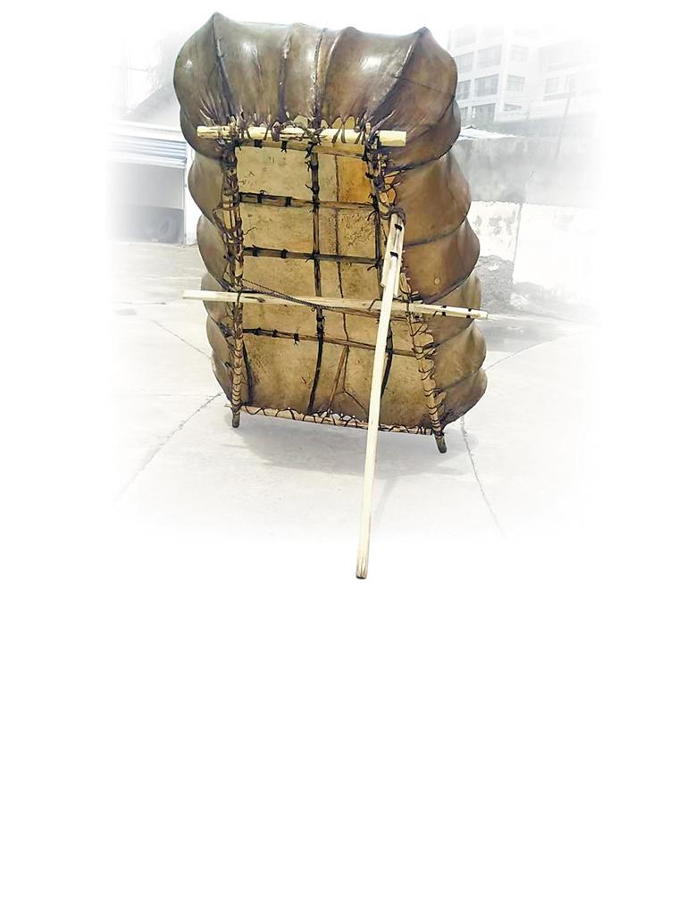 每次制作牛皮船前,手藝人先要將牛皮在水中浸泡處理,再將酥油或動物油脂等碾碎、涂抹,經晾曬,牛皮呈現(xiàn)黃褐色,再對牛皮進行縫制,對針腳、線條、松緊都有一定的要求。次仁說:“所有材料備好后,在制船的最后一天,邀請村里經驗最豐富的牛皮船技師來完成最重要的制船工序。而在之后的船只使用過程中,還要經常性地用酥油等油脂對牛皮船進行保養(yǎng),防止牛皮破裂?!?/p>