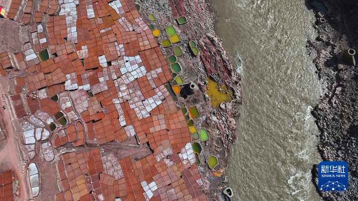瀾滄江畔的千年鹽田。井鹽曬制技藝被列入國(guó)家級(jí)非物質(zhì)文化遺產(chǎn)名錄。新華社記者 黨黎 攝