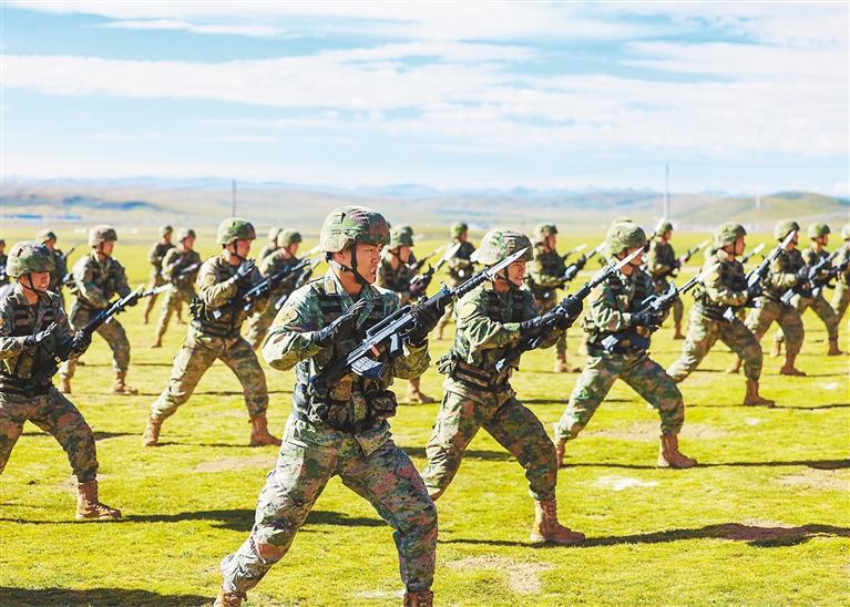 那曲市2025年度“軍事日”活動日前在那曲軍分區(qū)某訓(xùn)練場舉行。這是官兵們在進(jìn)行軍事科目演示。記者 萬靖 攝