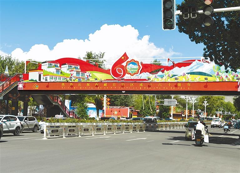 裝扮一新的人行天橋。 西藏日報記者 旦增蘭澤 攝