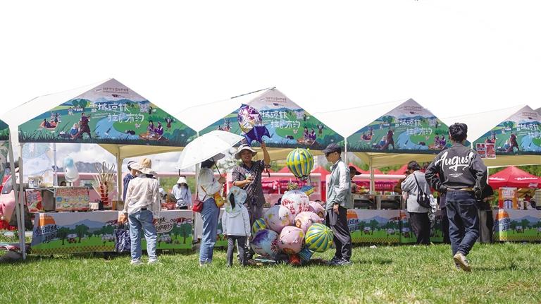 記者看到,綠野市集“沖賽康”充滿了煙火氣,30余家特色攤位齊聚林間。這里不僅有藏式甜茶、糌粑制品等傳統(tǒng)美食,讓游客大飽口福,還有氆氌文創(chuàng)、非遺手作等特色產(chǎn)品,滿足游客的購物需求。此外,互動(dòng)游戲與民俗體驗(yàn)也吸引了眾多游客參與,營造出充滿活力的林卡生活場景。