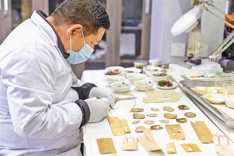 “貝葉經(jīng)修復(fù)技術(shù)在全世界沒有統(tǒng)一的標(biāo)準(zhǔn),也沒有具體的修復(fù)流程。我們是一步步探索和創(chuàng)新,才取得了重要突破。”布達(dá)拉宮管理處文??乒ぷ魅藛T冷本凱介紹說。