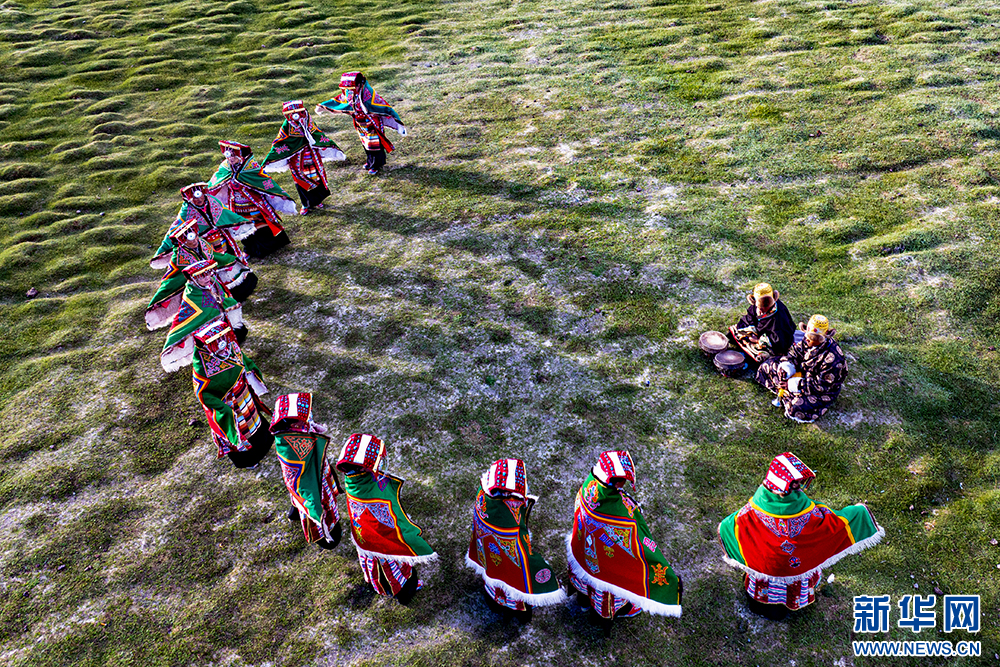 普蘭縣西德村村民在表演“果爾孜舞”(6月10日攝)?!肮麪栕挝琛庇?300多年的歷史,傳承沿襲傳統(tǒng)的口口相傳。2011年,被列入國家級(jí)非物質(zhì)文化遺產(chǎn)名錄。新華網(wǎng) 旦增努布 攝