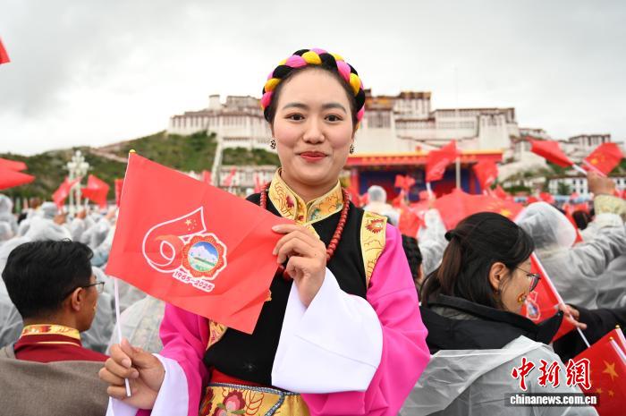 8月21日,拉薩古城居民羅桑群佩在布達拉宮廣場參加慶?;顒印V行律缬浾?趙朗 攝