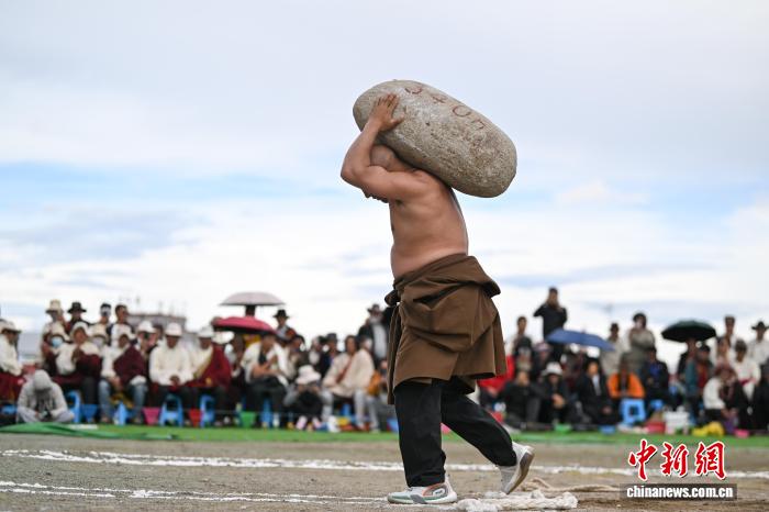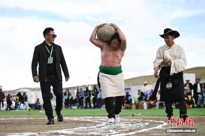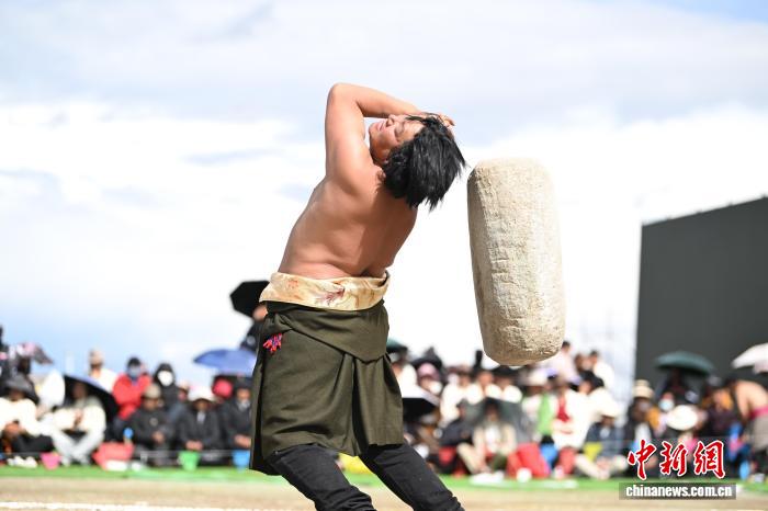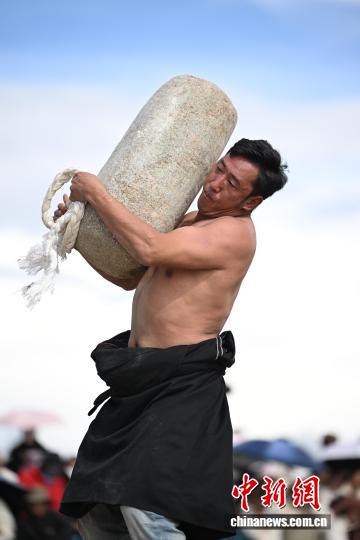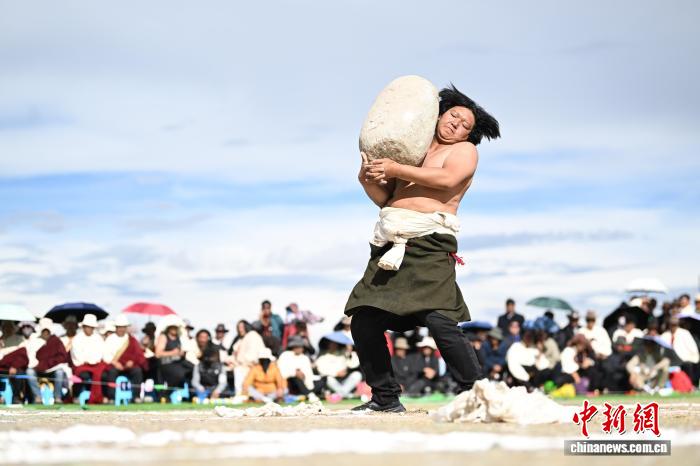 9月5日,2025年那曲市恰青賽馬節(jié)在格薩爾賽馬場(chǎng)開(kāi)幕。當(dāng)日,賽場(chǎng)中不僅有駿馬飛馳,更有力量的精彩較量。在抱石頭比賽現(xiàn)場(chǎng),來(lái)自那曲市各縣(區(qū))的男女選手們鼓足干勁,挑戰(zhàn)自我。這項(xiàng)傳統(tǒng)體育項(xiàng)目,展現(xiàn)了藏北人民的堅(jiān)韌與力量。圖為男參賽選手在抱石頭比賽。中新社記者 貢嘎來(lái)松 攝