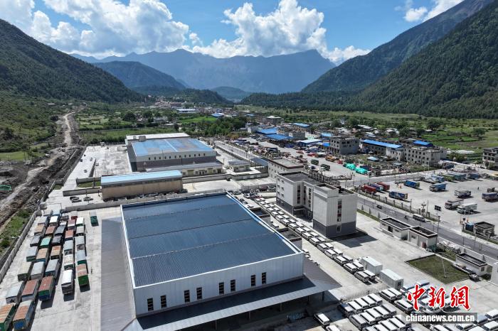 2025年5月25日,隨著邊境貿(mào)易的發(fā)展,西藏吉隆溝達(dá)曼村附近的物流園區(qū)已具規(guī)模。(無人機畫面)貢嘎來松 攝