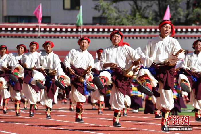 9月15日,西藏自治區(qū)昌都市第十一屆三江茶馬文化藝術節(jié)在津昌體育文化中心啟幕。開幕式以“紅色昌都 三江潮涌”為主題,由中共昌都市委員會、昌都市人民政府主辦,同步融入慶祝西藏自治區(qū)成立60周年元素,盡顯昌都文化魅力與發(fā)展活力。開幕式現(xiàn)場,來自昌都11縣(區(qū))、身著絢麗節(jié)日盛裝的游行方陣依次登場,各方陣通過特色展演展現(xiàn)地域文化風采。隨后,正式文藝表演拉開帷幕,表演共分為“三江奔騰·紅色昌都”“金沙江·紅色起點”“怒江·指尖上的傳承”“瀾滄江·高原上的燈塔”“同心筑夢向未來”五個篇章。康巴文化藝術團、天津青年友好使者藝術團、全國廣場舞愛好者及11縣(區(qū))藝術團等千余名表演者同臺獻藝。圖為開幕式上的文藝演出。貢確 攝