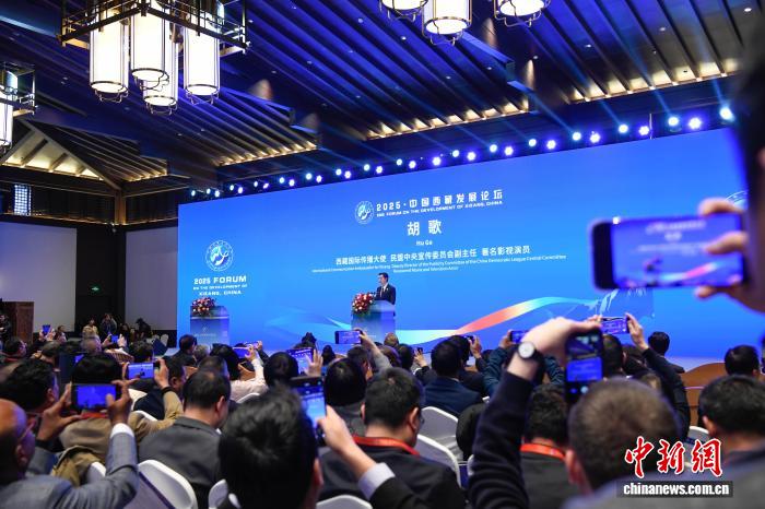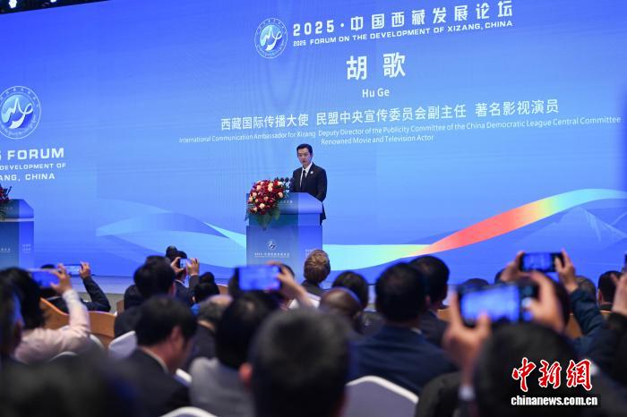 10月29日,“遇見(jiàn)美麗西藏 書(shū)寫(xiě)雪域新篇”為主題的2025·中國(guó)西藏發(fā)展論壇在林芝開(kāi)幕。來(lái)自40多個(gè)國(guó)家和地區(qū)的400多名中外嘉賓參會(huì)。圖為演員胡歌在開(kāi)幕式上發(fā)言。中新社記者 貢嘎來(lái)松 攝