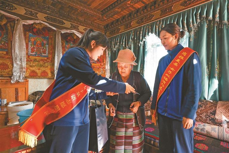 圖為崗拉美朵女子雙語志愿服務(wù)隊(duì)開展“敲門入戶”行動(dòng),向居民細(xì)致講解家庭用火、用電、用氣安全須知,傳授初起火災(zāi)撲救技巧及火場自救逃生方法。倉瓊 通訊員 孫成仲 攝