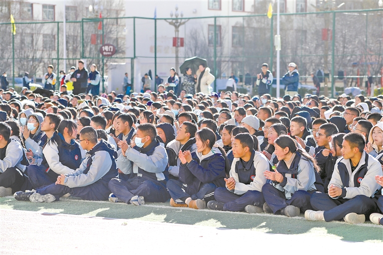 學(xué)生們?cè)诂F(xiàn)場(chǎng)認(rèn)真聆聽并熱烈鼓掌。記者 貢秋曲措 攝