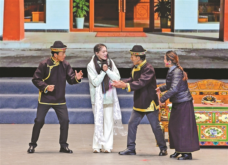 圖為林芝市巴宜區(qū)藝術(shù)團(tuán)在表演小品《歡迎來巴宜》。記者 王敏 攝