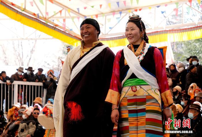 圖為拉薩非物質(zhì)文化遺產(chǎn)代表性項目演藝服飾秀現(xiàn)場。中新社記者 李林 攝