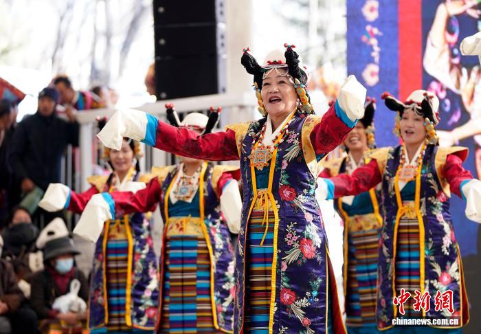1月2日,“新歲風(fēng)華,衣彩拉薩”2026年拉薩新年服飾秀子活動在布達拉宮腳下的宗角祿康公園舉行?;顒臃譃槔_非物質(zhì)文化遺產(chǎn)代表性項目演藝服飾秀與農(nóng)牧民婦女“村T”秀兩部分,通過演藝服飾與日常生活勞動服飾及場景的展示,生動呈現(xiàn)拉薩獨特的地域文化與民族風(fēng)情。圖為拉薩非物質(zhì)文化遺產(chǎn)代表性項目演藝服飾秀現(xiàn)場。中新社記者 李林 攝