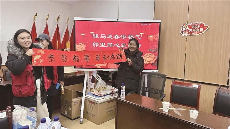 在成語(yǔ)競(jìng)猜環(huán)節(jié),馬年吉祥話與黨建知識(shí)巧妙結(jié)合,居民群眾現(xiàn)場(chǎng)搶答踴躍、笑聲連連;“噘嘴搬筷子”等趣味游戲,更讓老少居民玩在一起、樂(lè)成一團(tuán)。期間,網(wǎng)格員不僅是服務(wù)的提供者,更成為快樂(lè)的共享者,在與居民的互動(dòng)中,悄然系緊了鄰里的情感紐帶。
