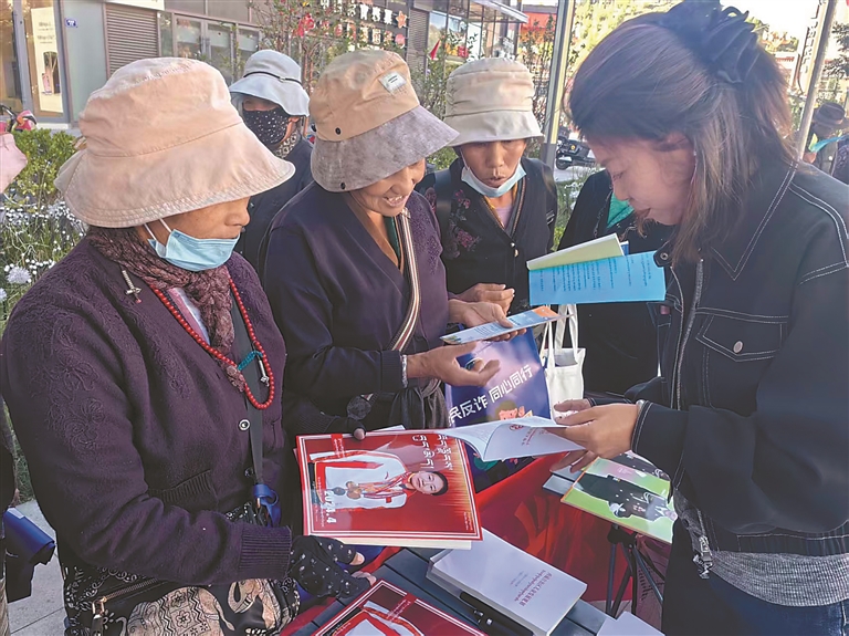 圖為山南市婦聯(lián)工作人員為廣大婦女群眾講解相關(guān)法律法規(guī)。記者 巴桑旺姆 攝