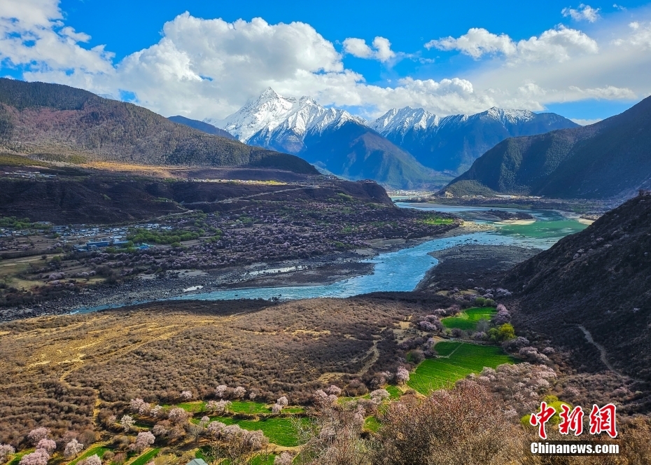 4月1日,西藏林芝市米林市境內(nèi)的南迦巴瓦峰下,桃花盛開(kāi),吸引了眾多游客前來(lái)游玩。南迦巴瓦峰被譽(yù)為“眾山之父”,海拔7782米,其山頂終年積雪,而山腳下則是郁郁蔥蔥的樹(shù)木和盛開(kāi)的桃花,形成了一幅獨(dú)特的垂直自然景觀。圖為南迦巴瓦峰腳下的桃花林。