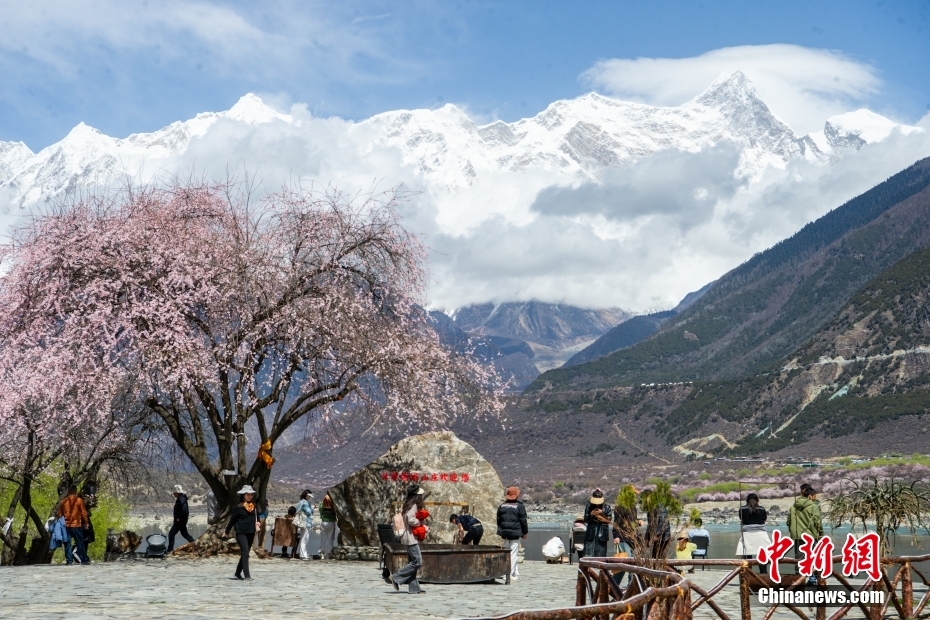 4月1日,西藏林芝市米林市境內(nèi)的南迦巴瓦峰下,桃花盛開(kāi),吸引了眾多游客前來(lái)游玩。南迦巴瓦峰被譽(yù)為“眾山之父”,海拔7782米,其山頂終年積雪,而山腳下則是郁郁蔥蔥的樹(shù)木和盛開(kāi)的桃花,形成了一幅獨(dú)特的垂直自然景觀。圖為游客在桃花樹(shù)下觀賞南迦巴瓦峰美景。