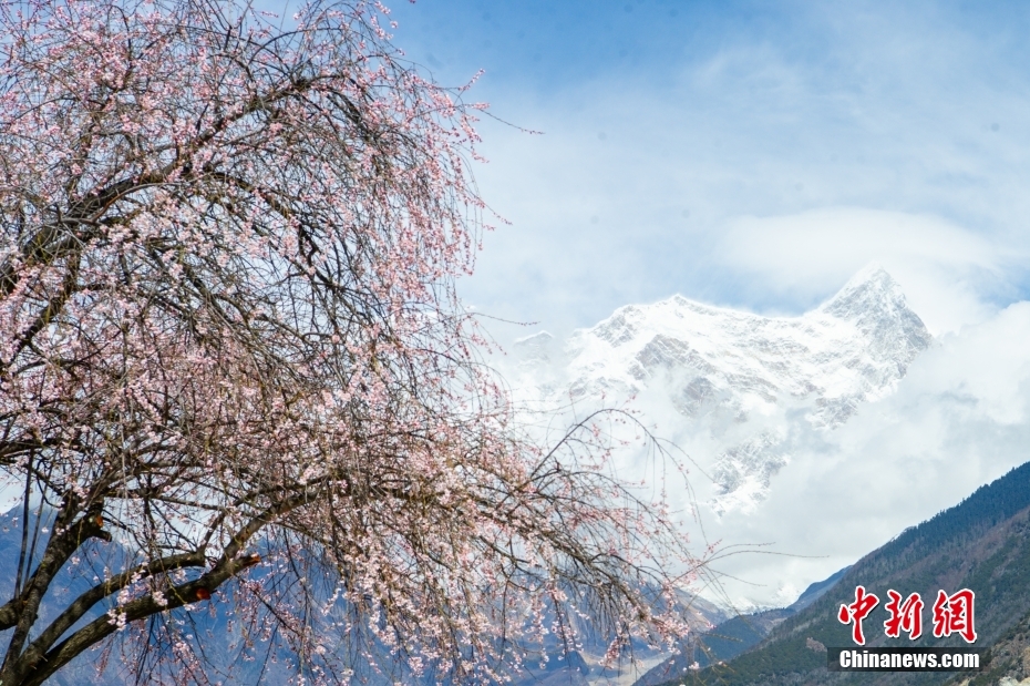 4月1日,西藏林芝市米林市境內(nèi)的南迦巴瓦峰下,桃花盛開(kāi),吸引眾多游客前來(lái)游玩。南迦巴瓦峰被譽(yù)為“眾山之父”,海拔7782米,其山頂終年積雪,而山腳下則是郁郁蔥蔥的樹(shù)木和盛開(kāi)的桃花,形成了一幅獨(dú)特的垂直自然景觀。圖為桃花掩映下的南迦巴瓦峰。