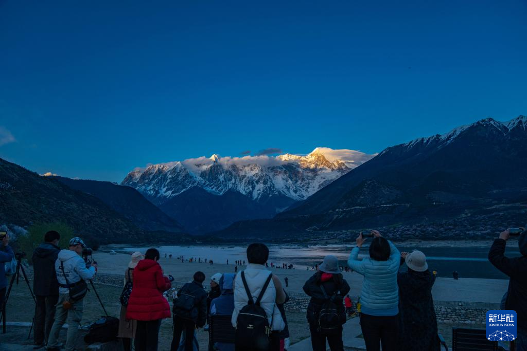 這是在索松村附近拍攝的南迦巴瓦峰夕照(4月1日攝)。新華社記者 孫非 攝