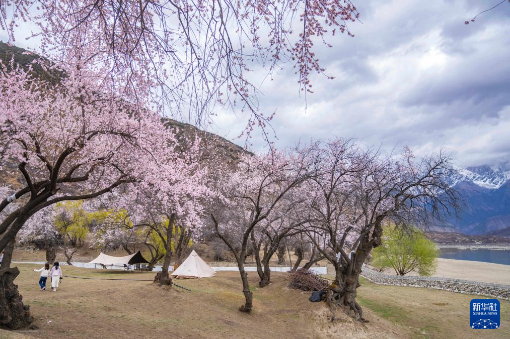 西藏林芝市米林市索松村是欣賞南迦巴瓦峰景觀的最佳位置之一。這里面向南迦巴瓦峰,腳下是蜿蜒的雅魯藏布江。林芝市第二十一屆桃花旅游文化節(jié)期間,雅魯藏布江邊的桃花次第盛開,與雪山、大江相襯,獨(dú)特的景色吸引著各地游客慕名而來,共赴一場(chǎng)“桃花之約”。