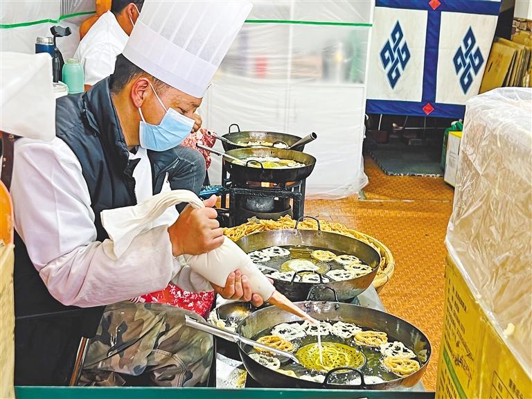 圖為商家正在炸制“卡賽”。記者 央金 攝