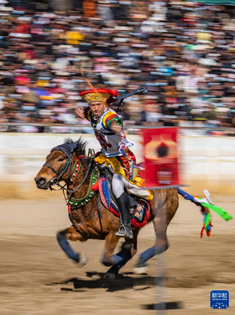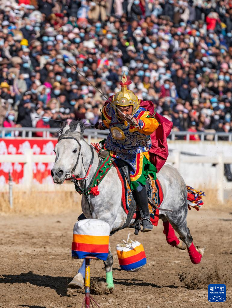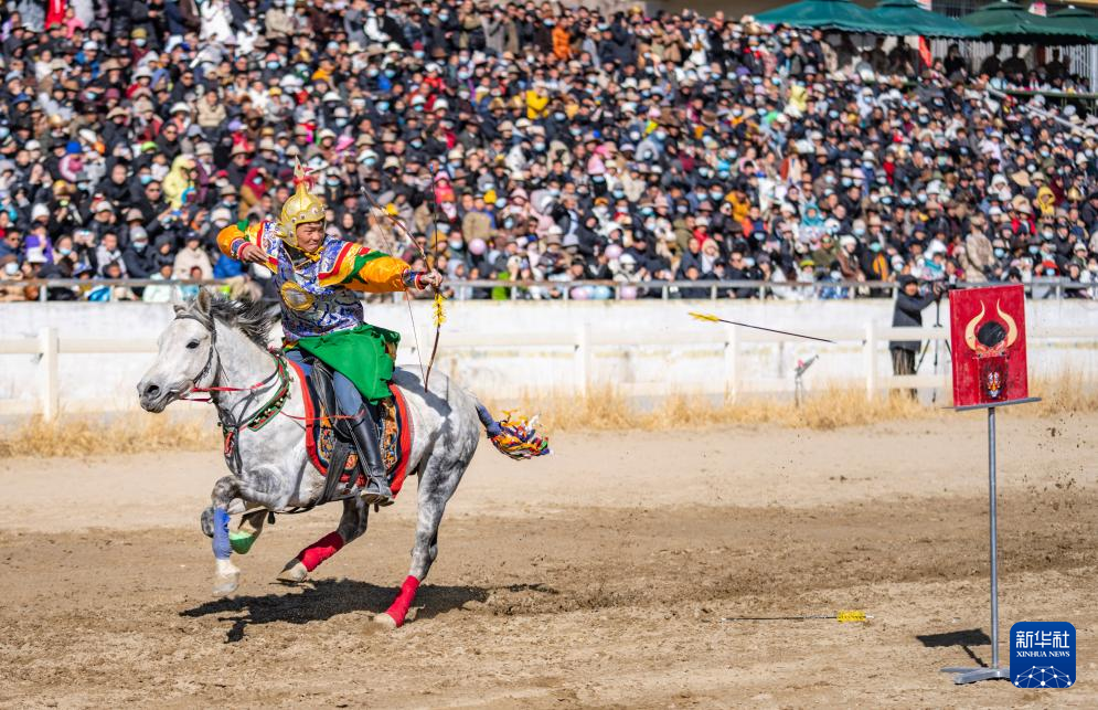 在拉薩賽馬場,騎手表演馬上射箭(2月12日攝)。新華社記者 孫瑞博 攝