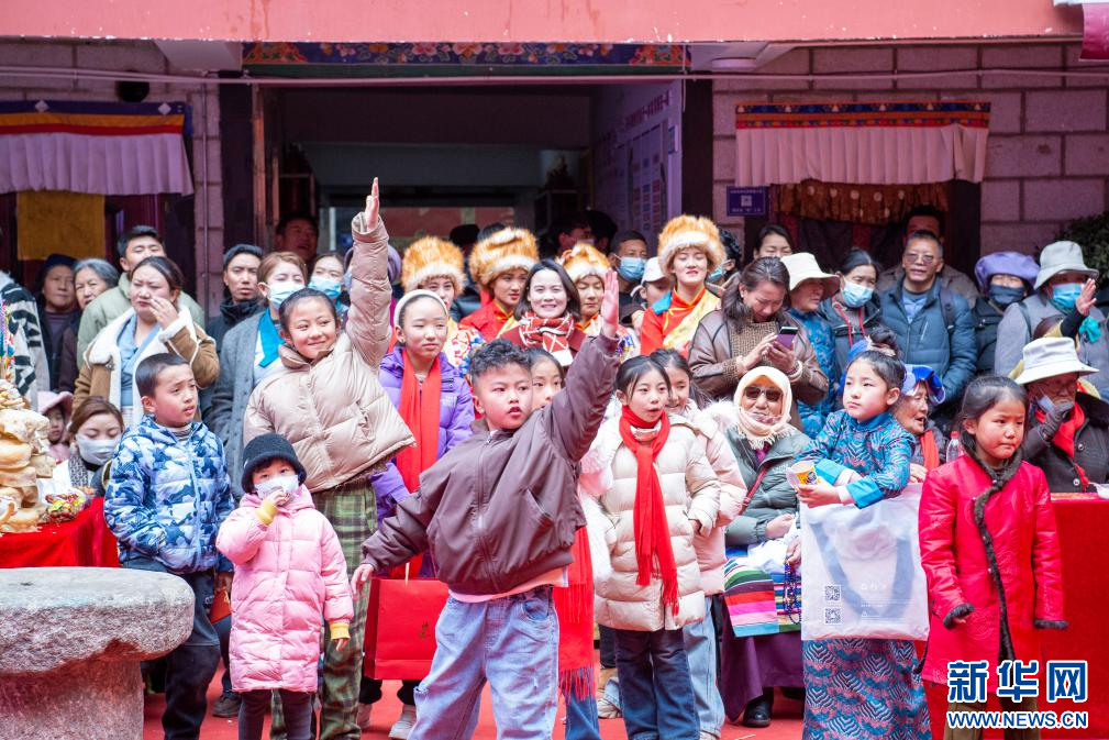 2月23日,小朋友們積極參與游戲互動。新華網(wǎng) 旦增努布 攝
