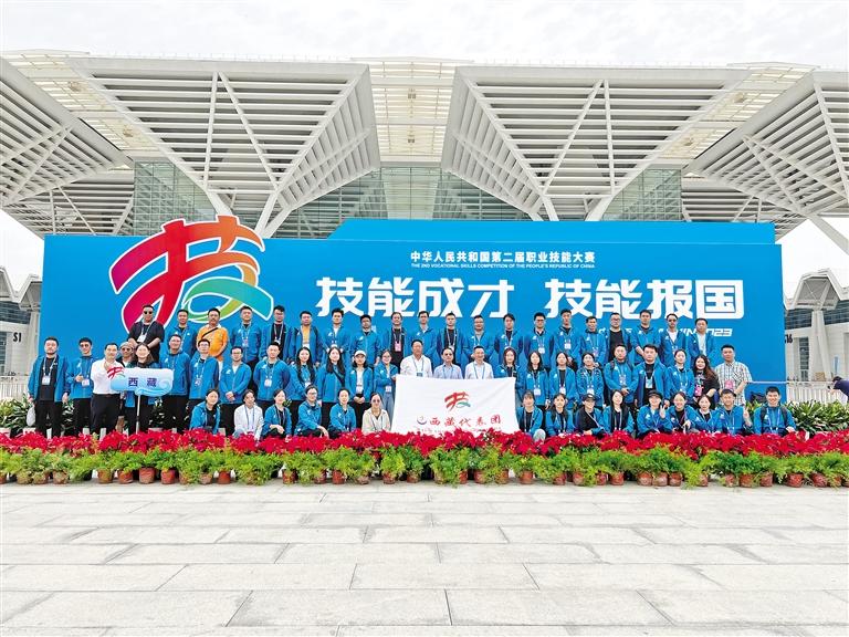 2023 年中華人民共和國(guó)第二屆職業(yè)技能大賽在天津市舉辦,西藏代表團(tuán)合影。