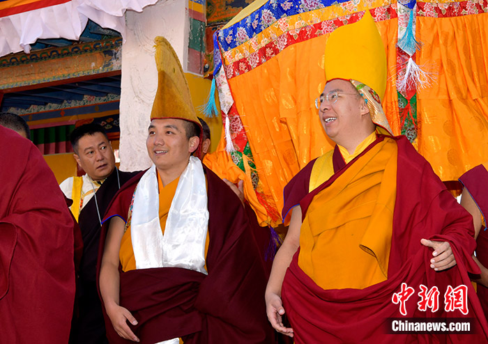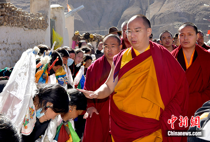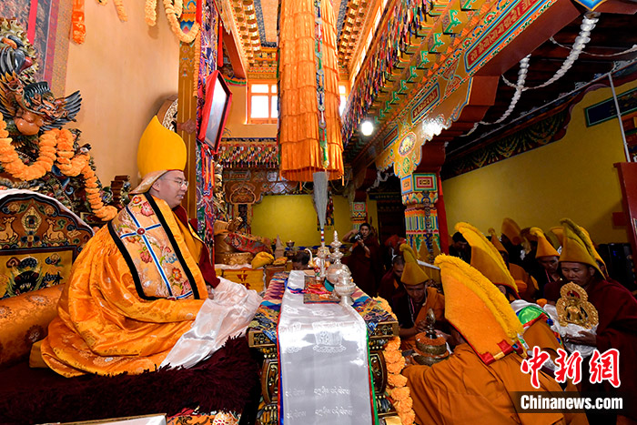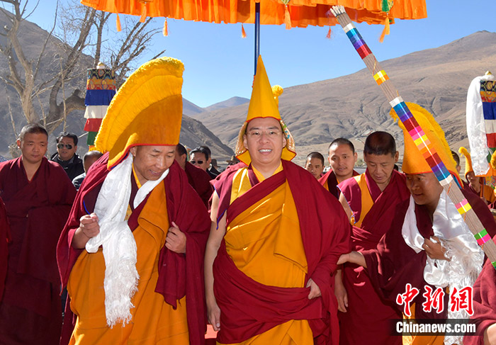 11月10日,班禪抵達(dá)日吾其寺。當(dāng)日,班禪在西藏日喀則市昂仁縣日吾其寺禮佛講經(jīng)。中新社記者 李林 攝