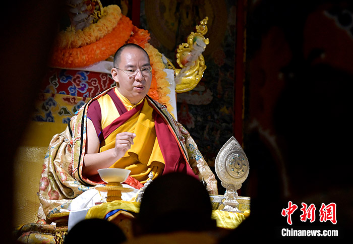 11月12日,班禪在扎西吉培寺為眾僧講經(jīng)。當(dāng)日,班禪在西藏日喀則市謝通門縣扎西吉培寺禮佛。中新社記者 李林 攝