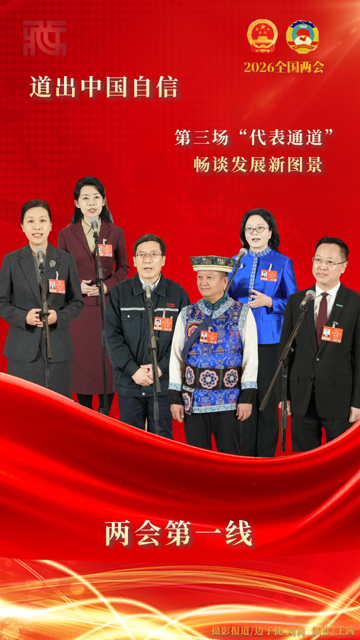 中國西藏網(wǎng)訊 3月12日下午,十四屆全國人大四次會議第三場“代表通道”集中采訪活動在人民大會堂中央大廳北側(cè)舉行,6位全國人大代表走上“代表通道”答記者問,暢談未來發(fā)展美好新圖景。(中國西藏網(wǎng) 記者/邊子捷 劉莉 攝影報道 制作/王茜)