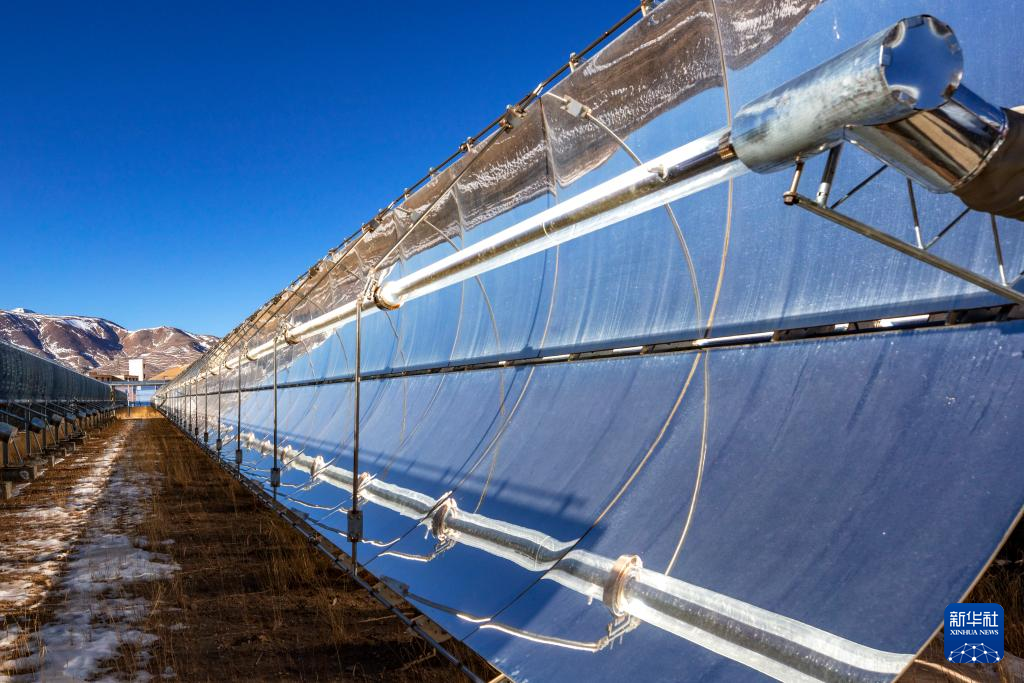 這是申扎縣城集中供暖項(xiàng)目太陽能集熱場局部(1月6日攝)。新華社記者 曹檳 攝