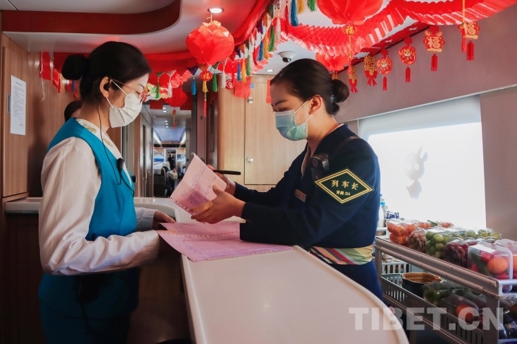 在拉日鐵路上的每一列高原動(dòng)車組列車中,1名列車長(zhǎng),3名乘務(wù)員,要負(fù)責(zé)9節(jié)車廂,755名乘客的乘務(wù)工作。從上車查驗(yàn)車票、行李安全擺放、列車禁煙宣傳,到途中協(xié)助乘客補(bǔ)票、提醒乘客到站信息等,列車乘務(wù)員們幾乎沒(méi)有時(shí)間休息。