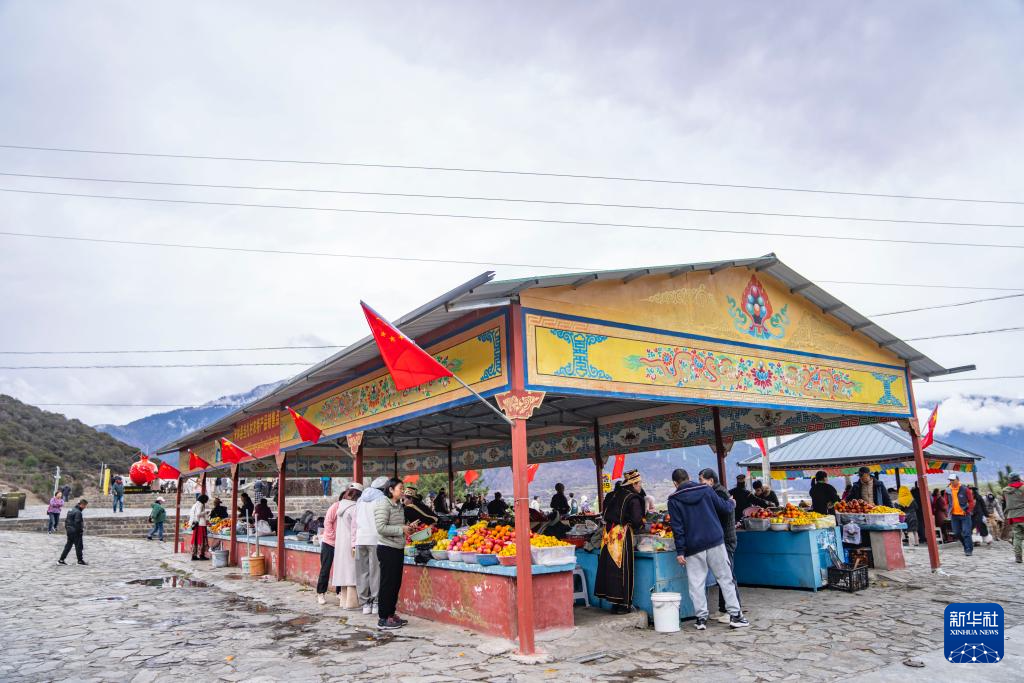 沿著219國道途經(jīng)西藏林芝米林市羌納鄉(xiāng)羌渡崗村時,尼洋河與雅魯藏布江交匯的壯美景觀令人駐足,成為許多游客的打卡點。勤勞的羌渡崗村婦女們,在這里擺起水果攤,還賣起了甜茶、青稞餅,吸引了眾多遠道而來的游客。