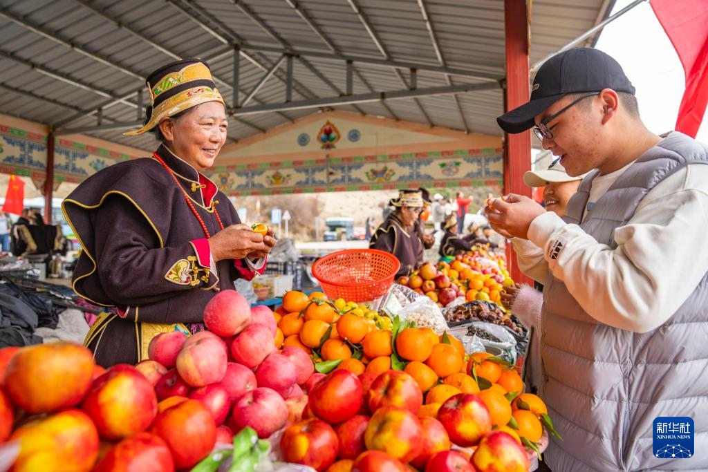 “2000年的時候,只有5、6戶在賣水果。后來我?guī)Т蠹胰ジ浇慕_縣、派鎮(zhèn)等參觀學(xué)習(xí),看別人怎么售賣、怎么搞衛(wèi)生?!?8歲的邊巴是羌渡崗村前村委會主任,他回憶,“以前攤位沒有通水,從村里接出的管道一到冬天就裂。隨著硬件改善和大家售賣經(jīng)驗日漸豐富,村民們的變化越來越大?!?/p>