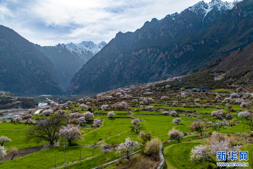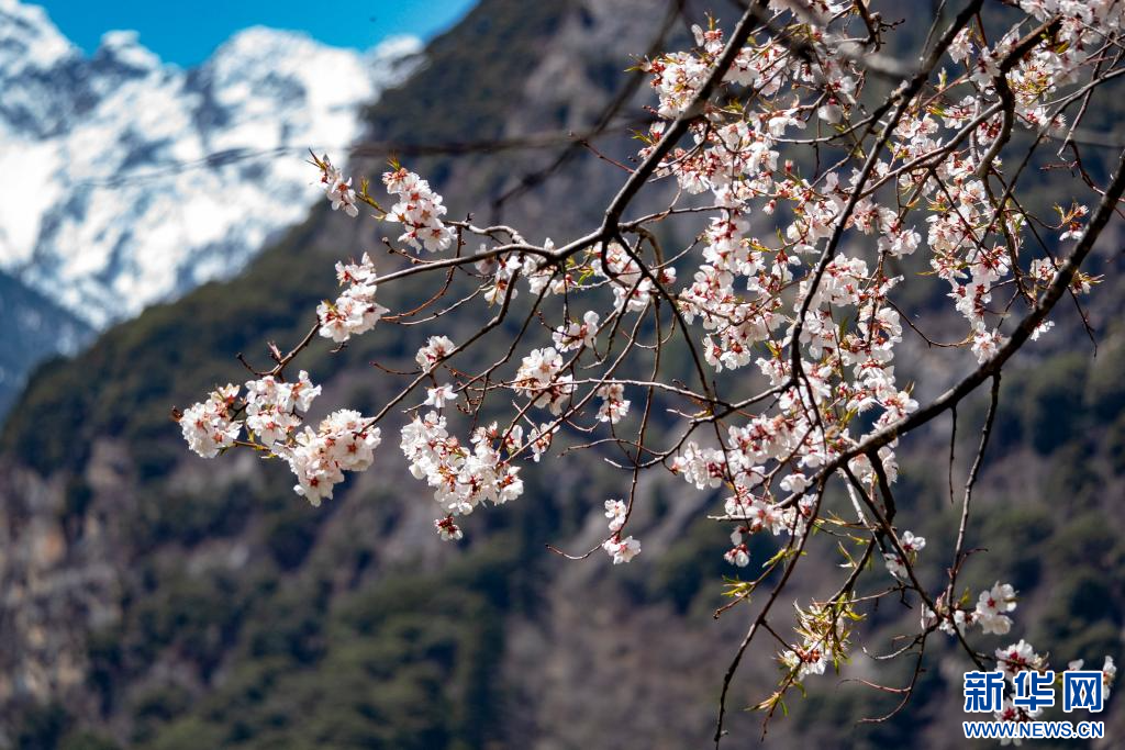 4月18日,在嘉黎縣尼屋鄉(xiāng)境內盛開的桃花。新華網(wǎng) 旦增努布 攝